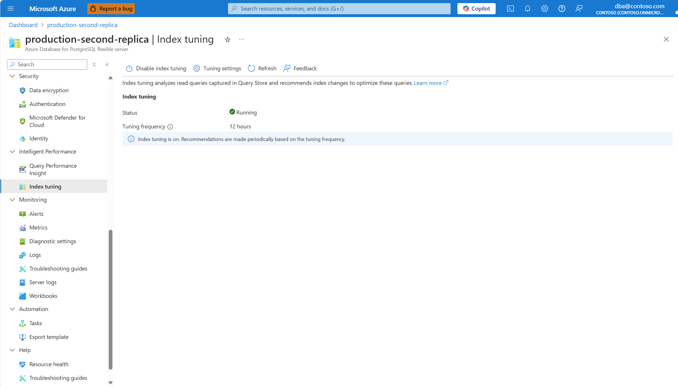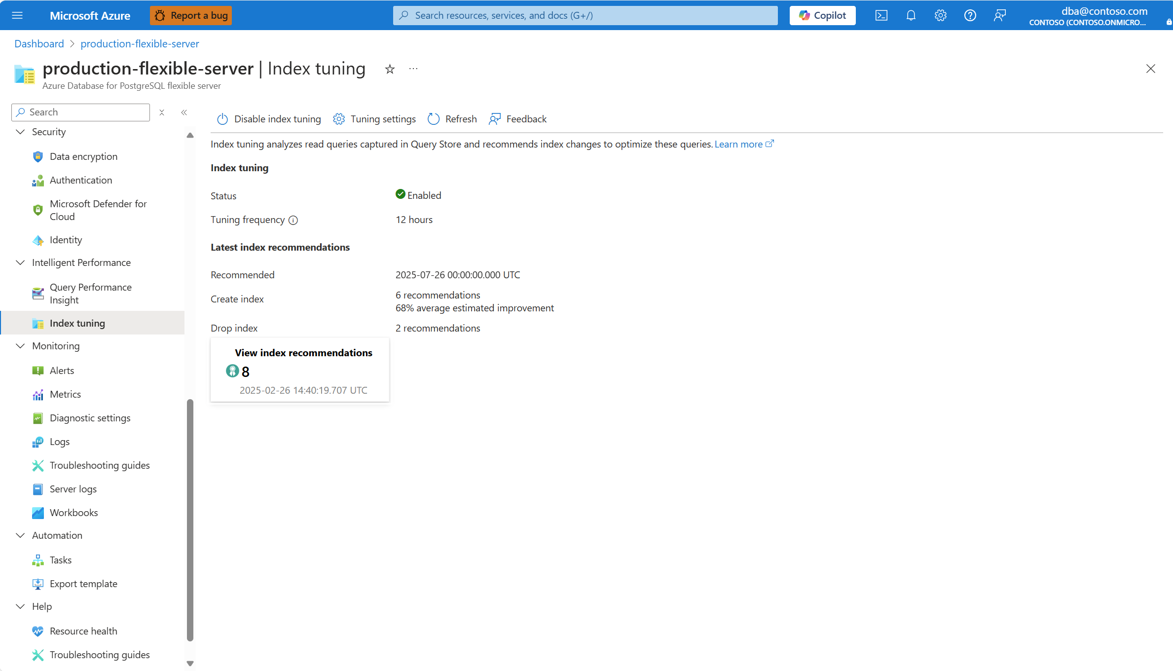 You can list index tuning recommendations produced by index tuning in an existing server via the az postgres flexible-server index-tuning list-recommendations command.
