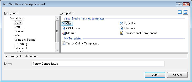 The ASP.NET MVC controller is just a class. If you prefer, you can ignore the convenient Visual Studio controller scaffolding and create a controller class by hand. Follow these steps: