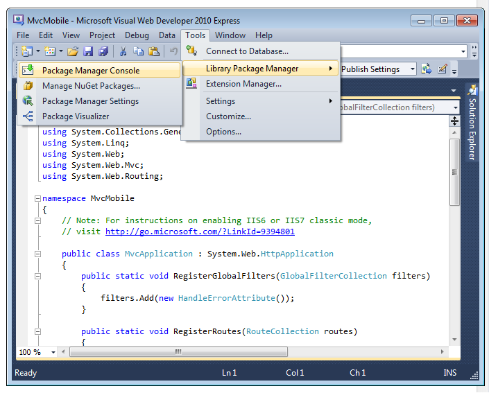 This tutorial will teach you the basics of how to work with mobile features in an ASP.NET MVC 4 Web application. For this tutorial, you can use Visual Studio Express 2012 or Visual Web Developer 2010 Express Service Pack 1 ("Visual Web Developer or VWD"). You can use the professional version of Visual Studio if you already have that.