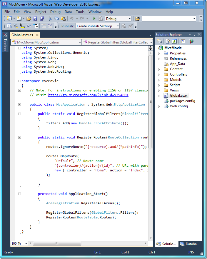 Open the Global.asax file that's at the root of the MvcMovies project: