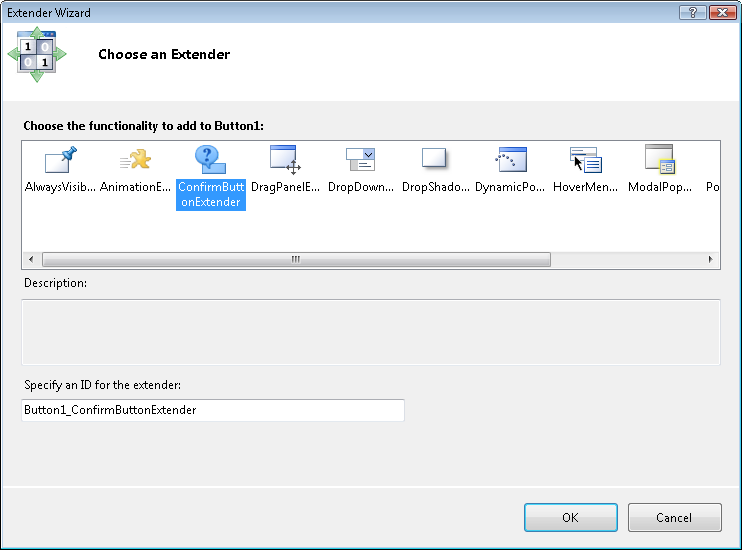 5. In the Choose Extender dialog, select ConfirmButtonExtender (see Figure 5) and click the OK button.