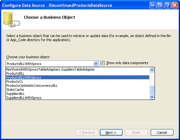 Let s start by adding a stored procedure that simply returns all of the products that have been discontinued. Name the new stored procedure file GetDiscontinuedProducts.vb.