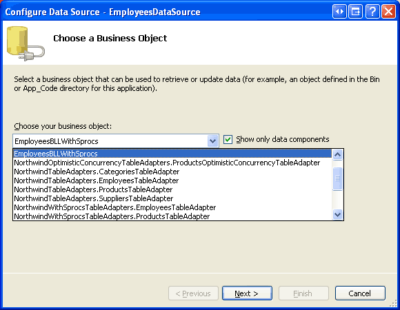 SelectMethod="GetEmployees" TypeName="EmployeesBLLWithSprocs">