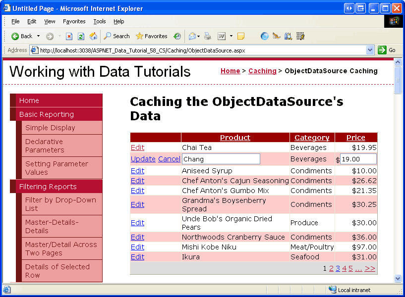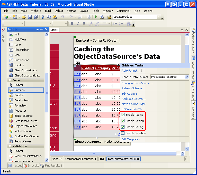 Step 4: Caching the Data Using the ObjectDataSource