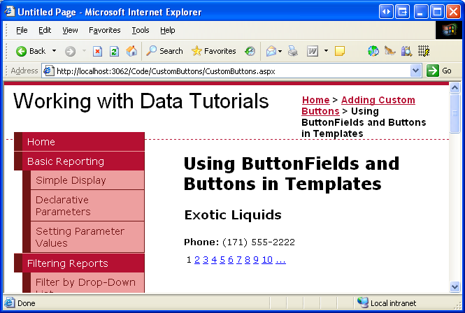 In this tutorial we'll look at how to add custom buttons, both to a template and to the fields of a GridView or DetailsView control. In particular, we'll build an interface that has a FormView that allows the user to page through the suppliers.