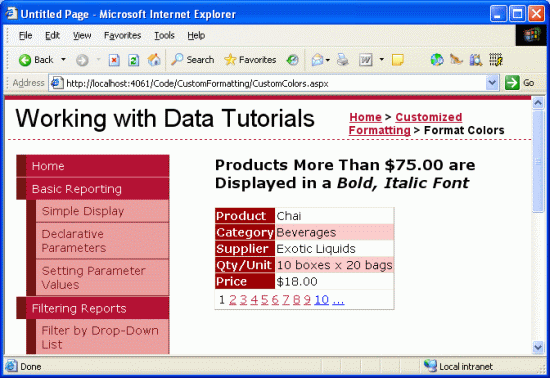 Then, in the DataBound event handler, set the cell's CssClass property to ExpensivePriceEmphasis. The following code shows the DataBound event handler in its entirety: