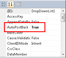When the user changes the selected department in the drop-down list, you want the list of associated courses to change automatically. To make this happen, select the drop-down list, and in the Properties window set the AutoPostBack property to True.