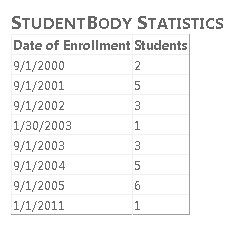 Suppose Contoso University wants to put some student-body statistics on its About page. Specifically, it wants to show a breakdown of numbers of students by the date they enrolled.