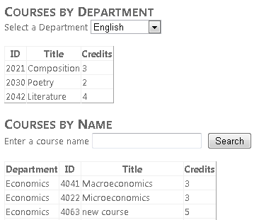 Run the page. The initial display shows a list of all courses in order by department and then by course title.