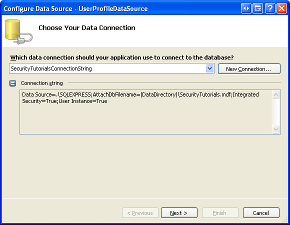 Figure 8: Choose SecurityTutorialsConnectionString from the Drop-Down List (Click to view full-size image)