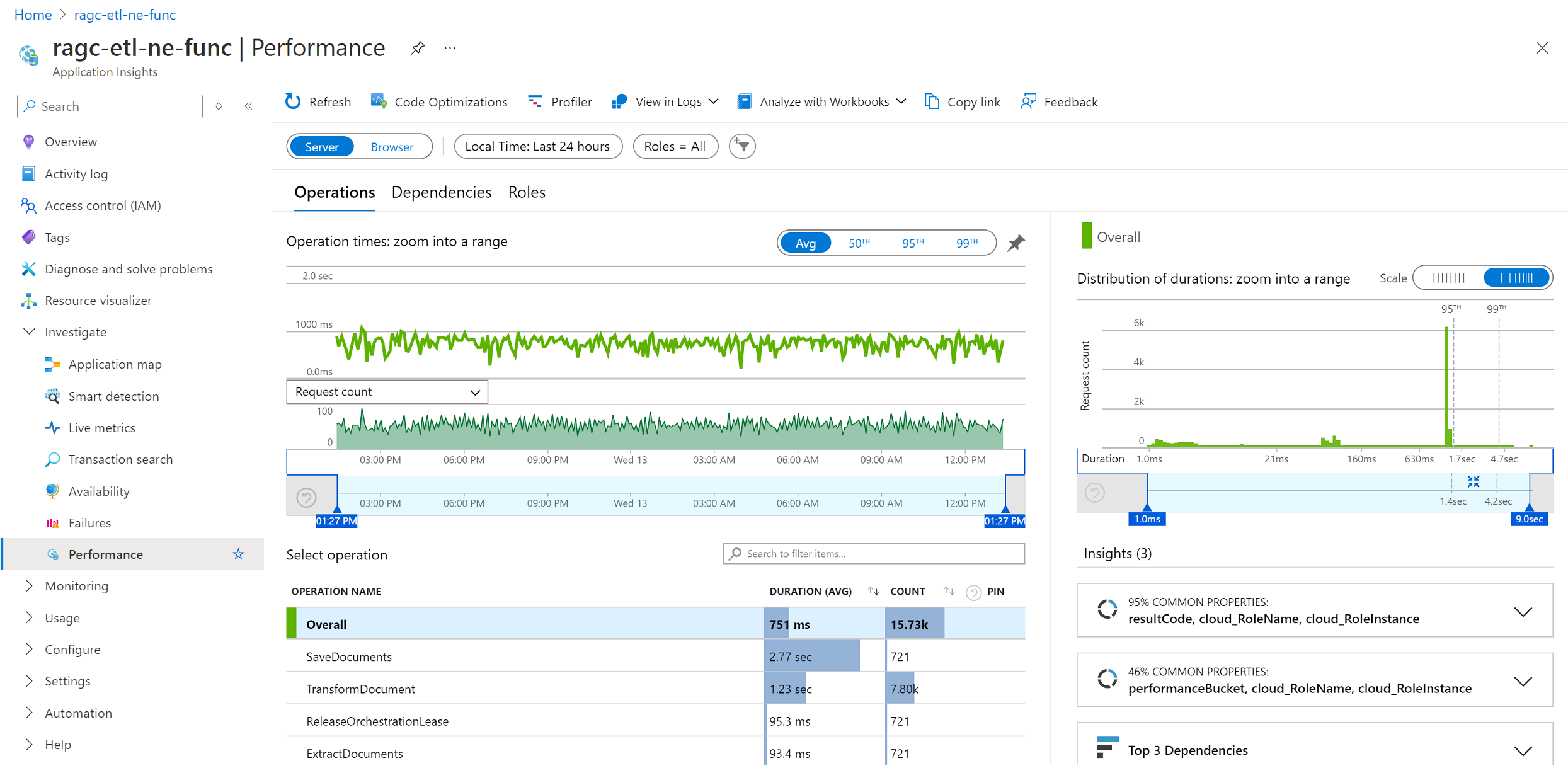Host.Resultstelemetry data displayed in Application Insights Performance dashboard:Host.Aggregator vs Host.Results: Both categories provide good insights about function executions. If needed, you can remove the detailed information from one of these categories, so that you can use the other for monitoring and alerting. Here's a sample: