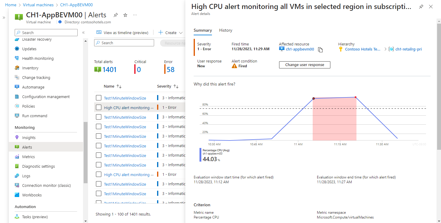 - Severity for the alert. The severity allows you to group alerts with a similar relative importance. A severity of Error is appropriate for an unresponsive virtual machine.