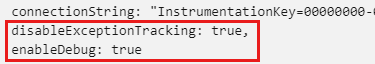 To add SDK configuration, add each configuration option directly under connectionString. For example: