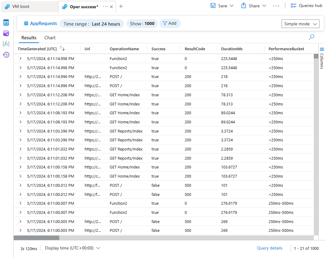 Log Analytics is a tool in the Azure portal for running log queries and analyzing their results. Log Analytics Simple mode lets any user, regardless of their knowledge of KQL, retrieve data from one or more tables with one click. A set of controls lets you explore and analyze the retrieved data using the most popular Azure Monitor Logs functionality in an intuitive, spreadsheet-like experience.