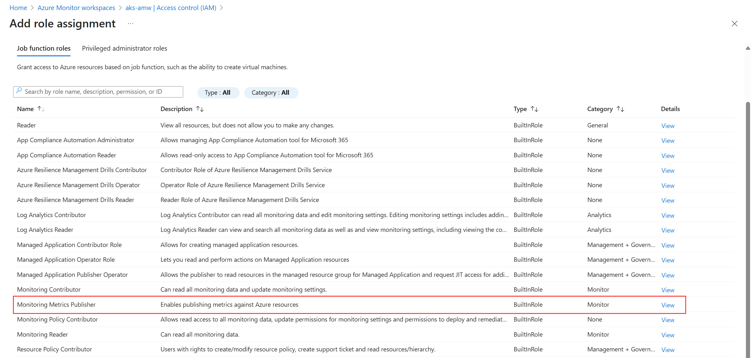 3. Select the Monitoring Metrics Publisher role, and then select Next.