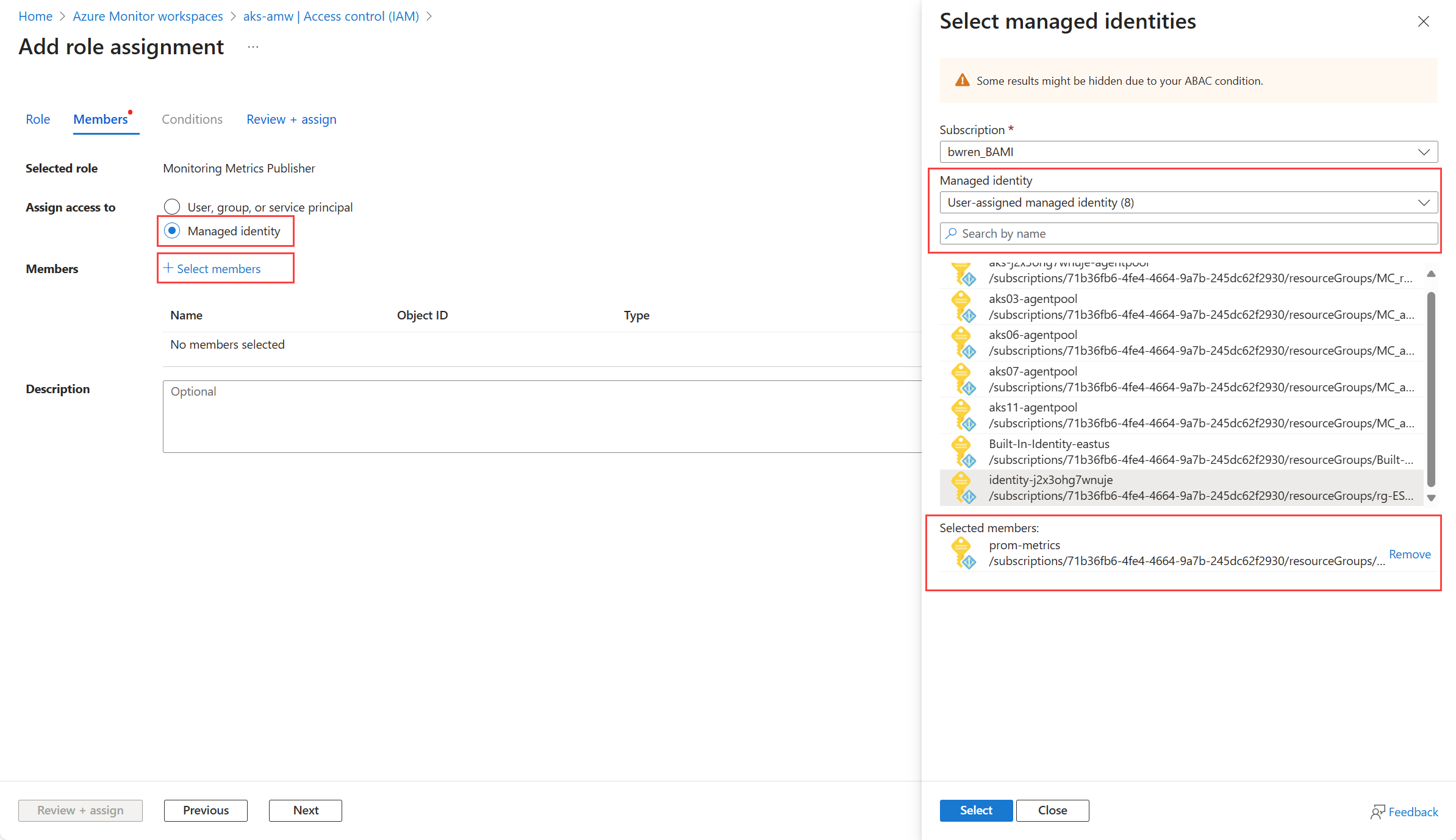 Screenshot that shows selection of managed identity members.