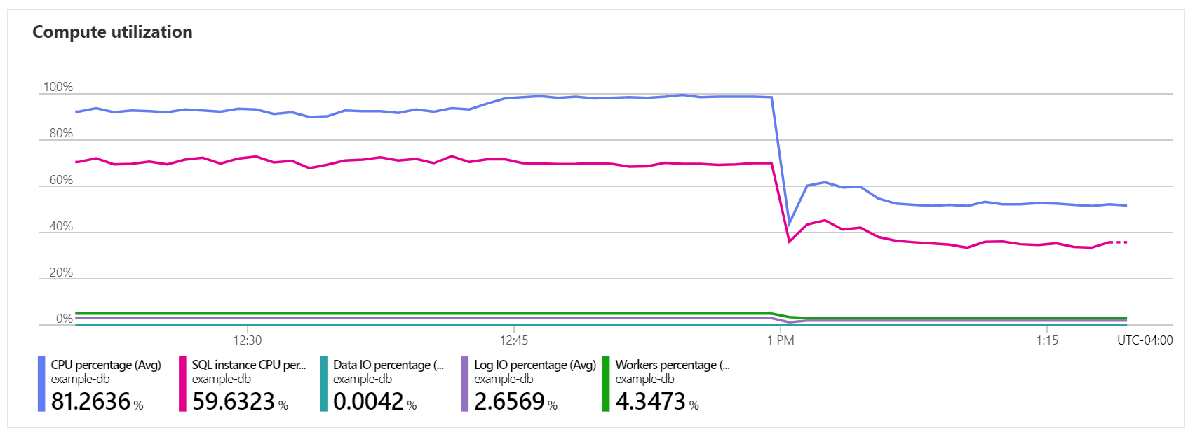CPU percentage cpu_percent This metric shows CPU consumption toward the user workload limit of a database or an elastic pool, expressed as a percentage. For more information, see Resource consumption by user workloads and internal processes.