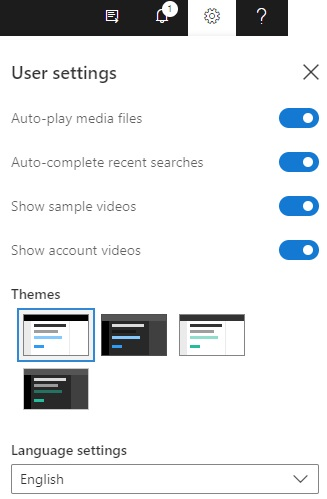 • Website Language - Whether the language can be selected for use on the Azure AI Video Indexer website. Select the Settings icon then select the language in the Language settings dropdown.
