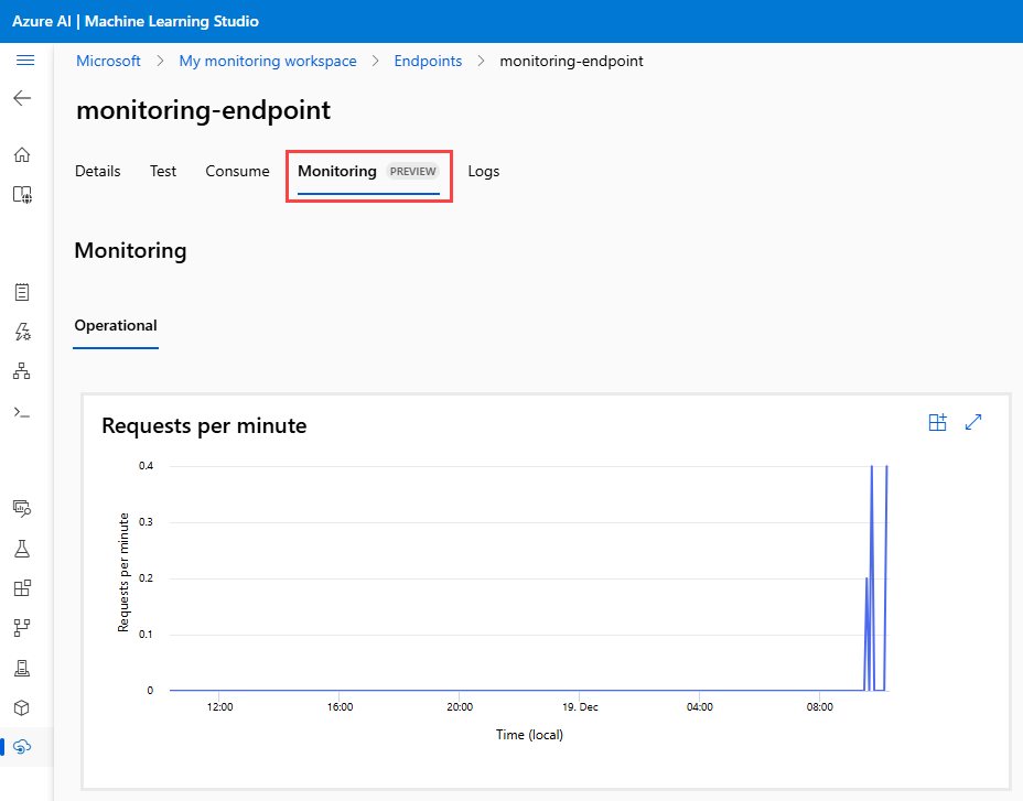 When you turn on Application Insights, you can see high-level activity monitor graphs for a managed online endpoint. In the studio, go to the endpoint's page, and then select the Monitoring tab.
