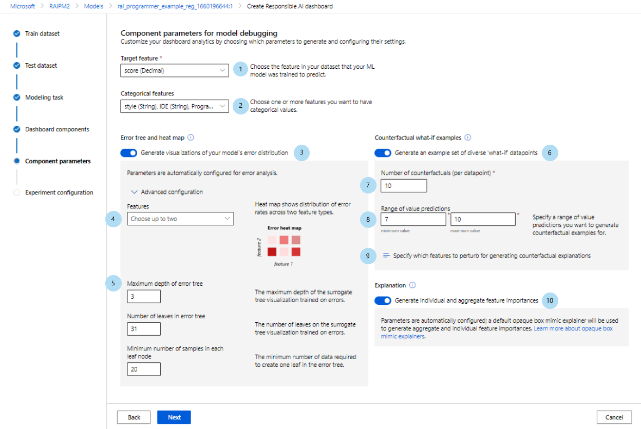 6. Generate counterfactual what-if examples: Toggle on and off to generate a counterfactual what-if component for your Responsible AI dashboard.