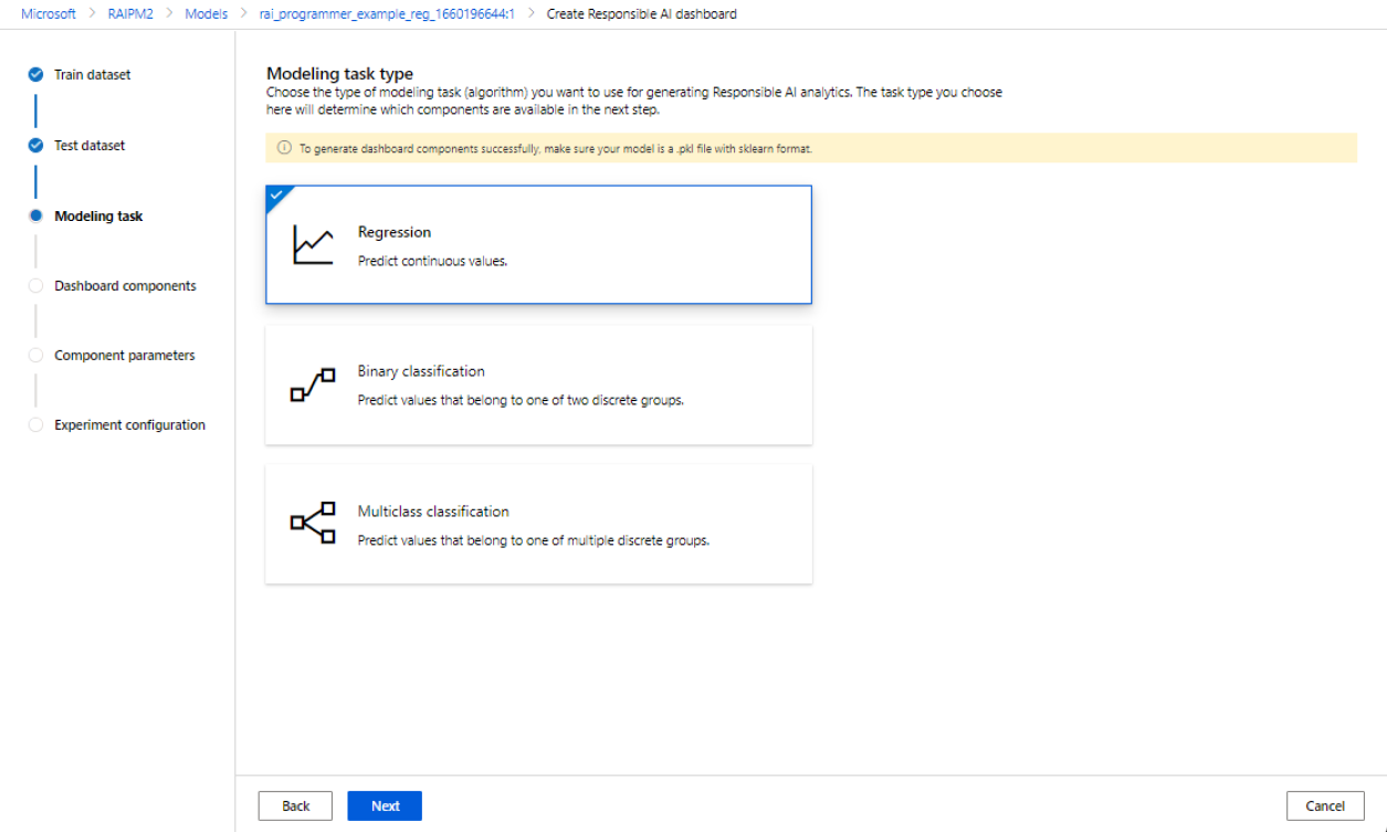 To learn more supported model types and limitations in the Responsible AI dashboard, see supported scenarios and limitations.