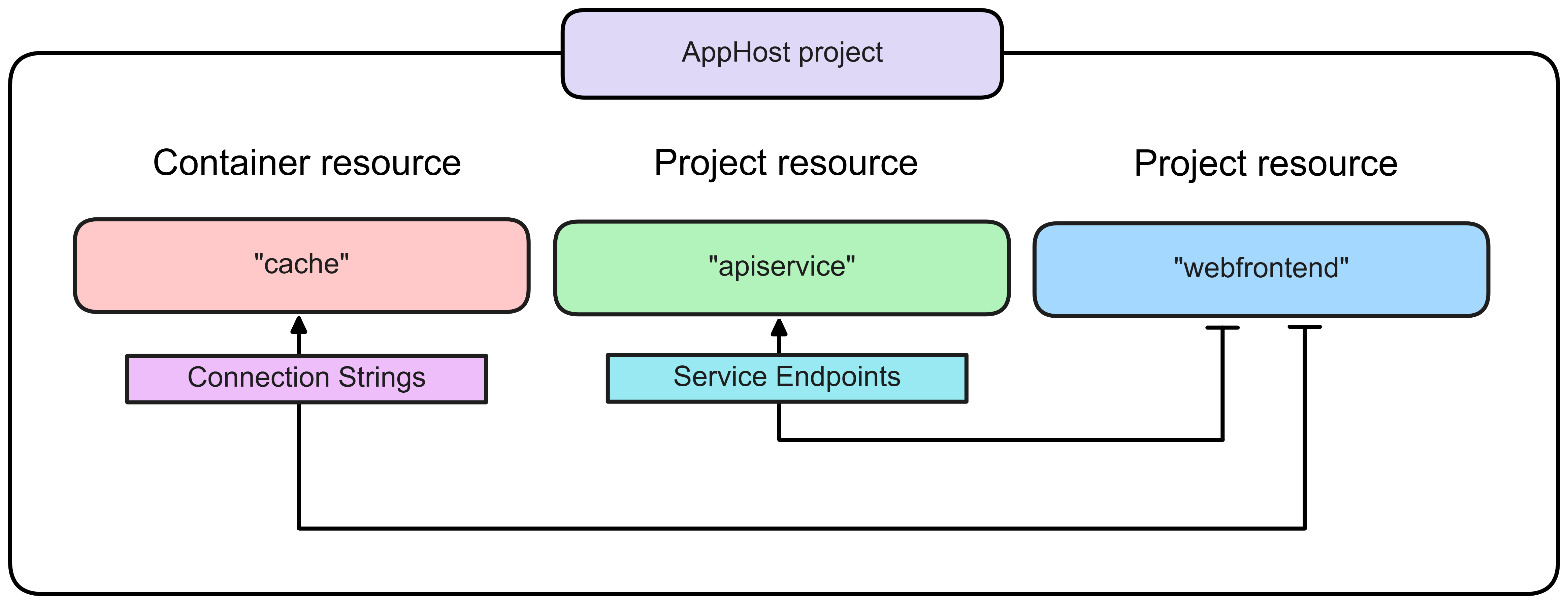 To help visualize the relationship between the AppHost project and the resources it describes, consider the following diagram: