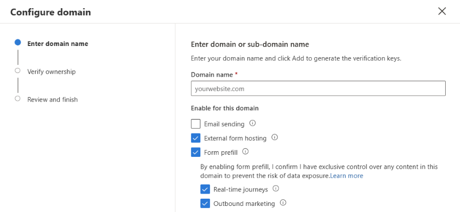 You don't need to verify ownership of the domain enabled for prefill of real-time journeys forms.