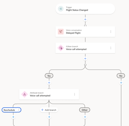 - Brands are constantly looking for ways to anticipate customer needs and connect with them on the channels that is the most appropriate for the message engagement. By integrating Customer Insights - Journeys with Contact Center, you can leverage custom-built AI agents to deliver meaningful, hyper-personalized conversational voice calls that boost customer satisfaction and engagement. For example, you can alert a customer about a flight delay via a voice call where the custom-built AI agent engages them in a natural language conversation to inform them about the issue and offer solutions such as reschedule or refund. The results of the conversation then drive the next action in the journey, whether that’s rescheduling the flight, issuing the refund, or sending an email because there was no answer.