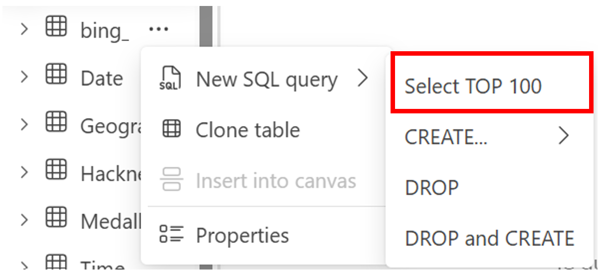 ...action menu, and select Insert to canvas. Or, you can drag and drop them into the visual query by selecting, holding, then dragging the tables from the Explorer.