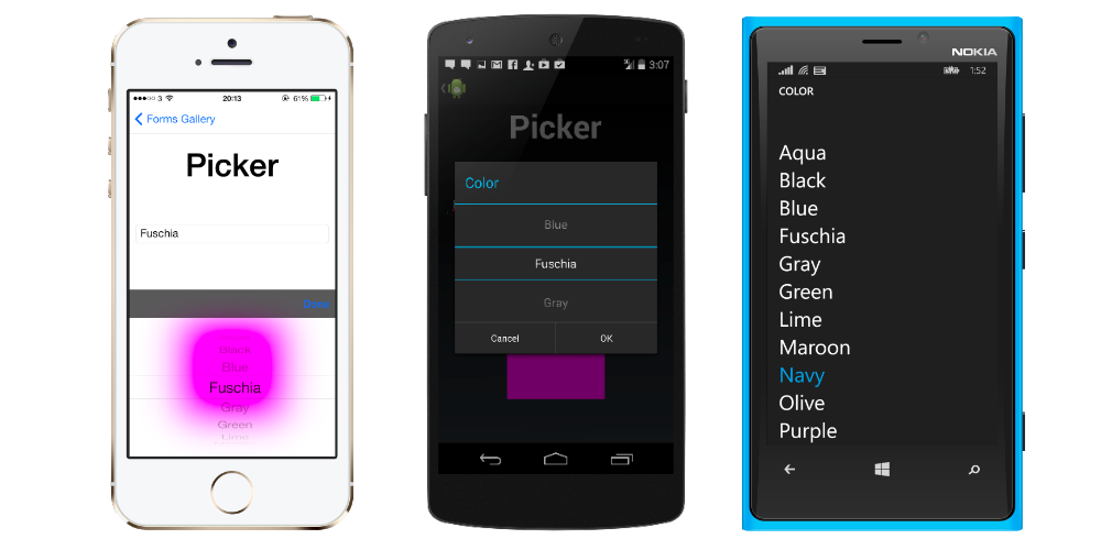 The visual representation of a Picker is similar to a Entry, but a picker control appears in place of a keyboard.