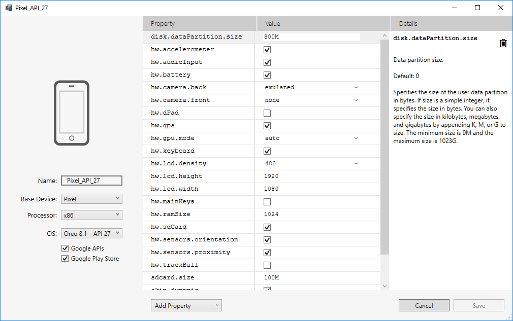 Editing Android Virtual Device Properties