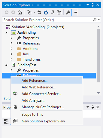 To consume this .DLL in your Xamarin.Android app, you must first add a reference to the Bindings Library. Use the following steps:
