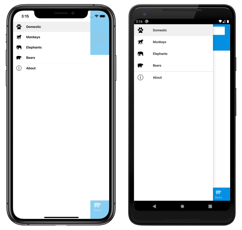 Alternatively, the background of the flyout can be specified by setting the Shell.FlyoutBackground bindable property to a Brush: