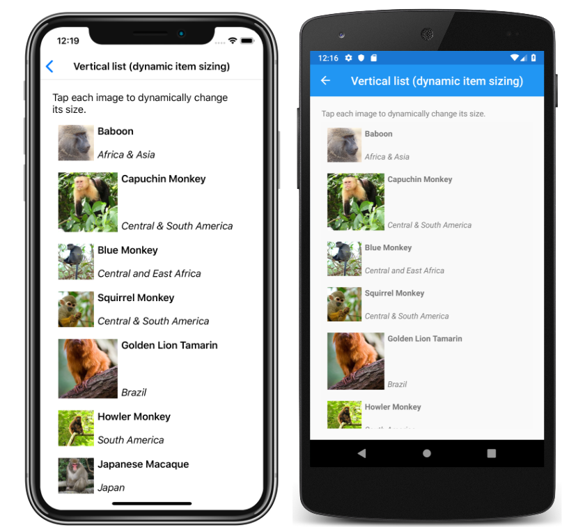 By default, each item in a CollectionView is individually measured and sized, provided that the UI elements in the DataTemplate don't specify fixed sizes. This behavior, which can be changed, is specified by the CollectionView.ItemSizingStrategy property value. This property value can be set to one of the ItemSizingStrategy enumeration members: