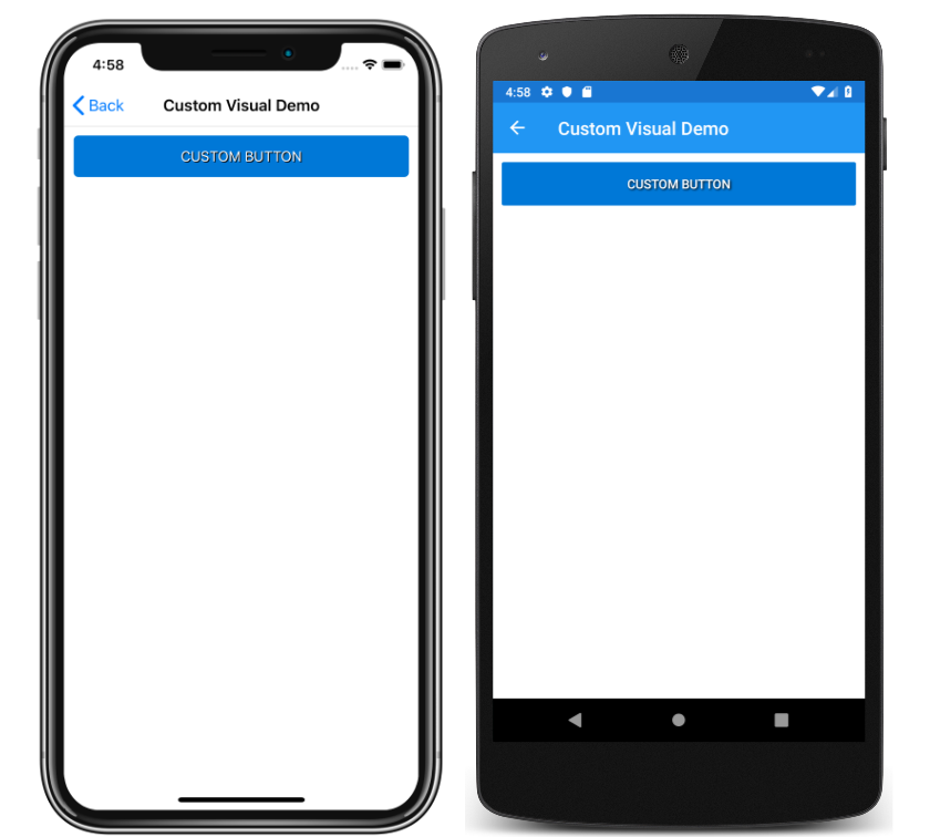 At renderer selection time, the Visual property of the Button is inspected and included in the renderer selection process. If a renderer isn't located, the Xamarin.Forms default renderer will be used.