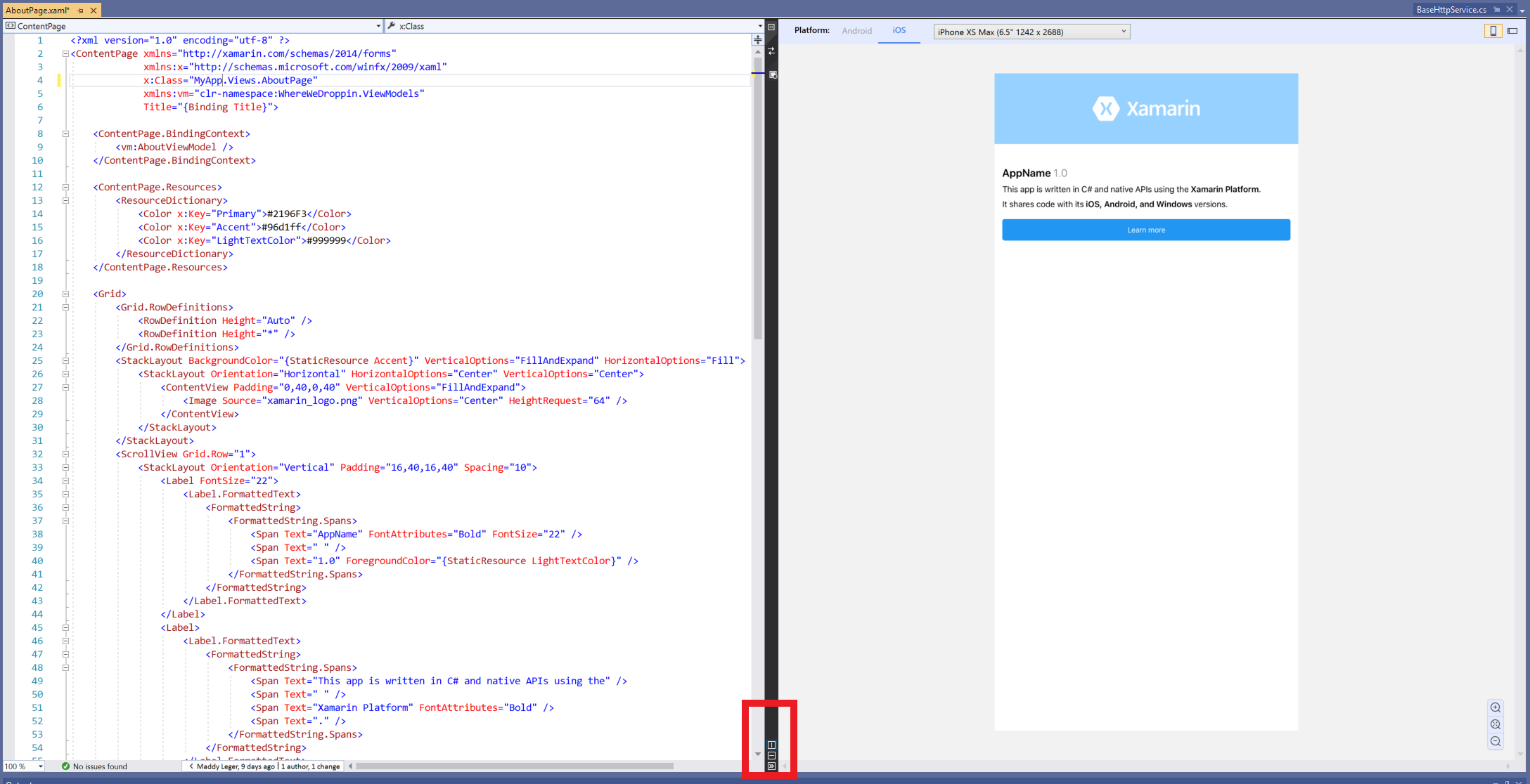 The XAML Previewer shows you how your Xamarin.Forms XAML page will look on iOS and Android. When you make changes to your XAML, you'll see them previewed immediately alongside your code. The XAML Previewer is available in Visual Studio and Visual Studio for Mac.