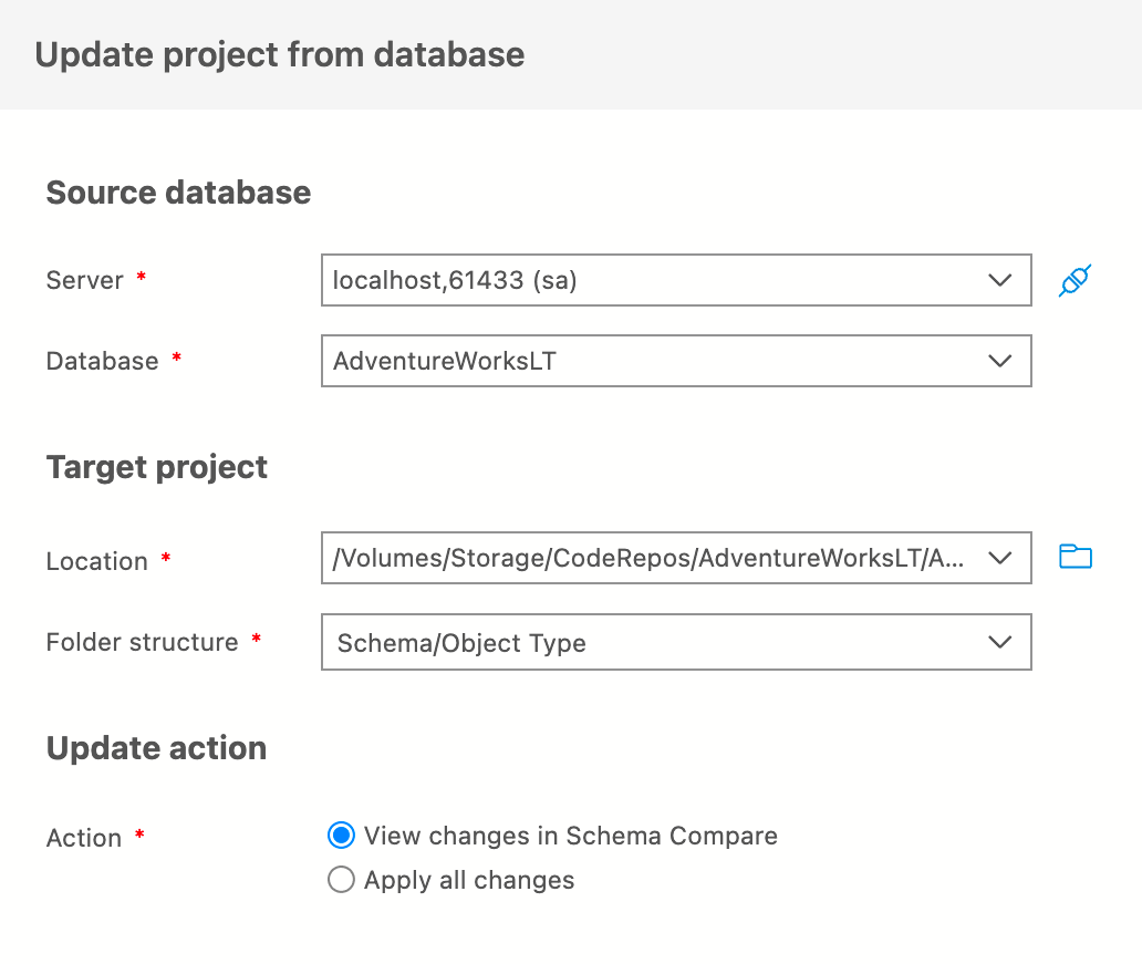 Learn more about schema comparison and SQL projects in the Schema Compare for SQL projects article.