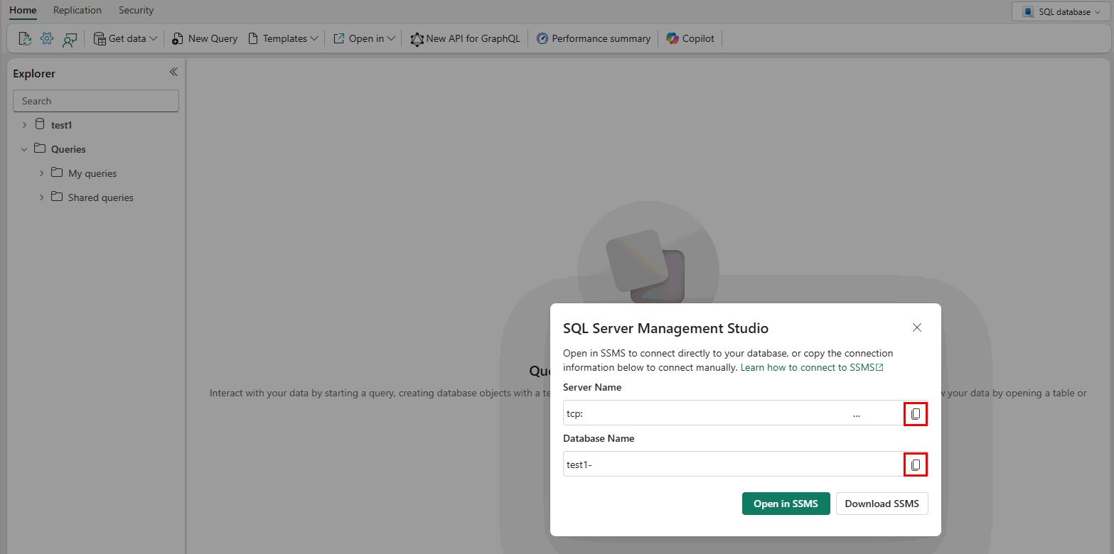 Locate the server name and database name for your SQL database in the Fabric portal.