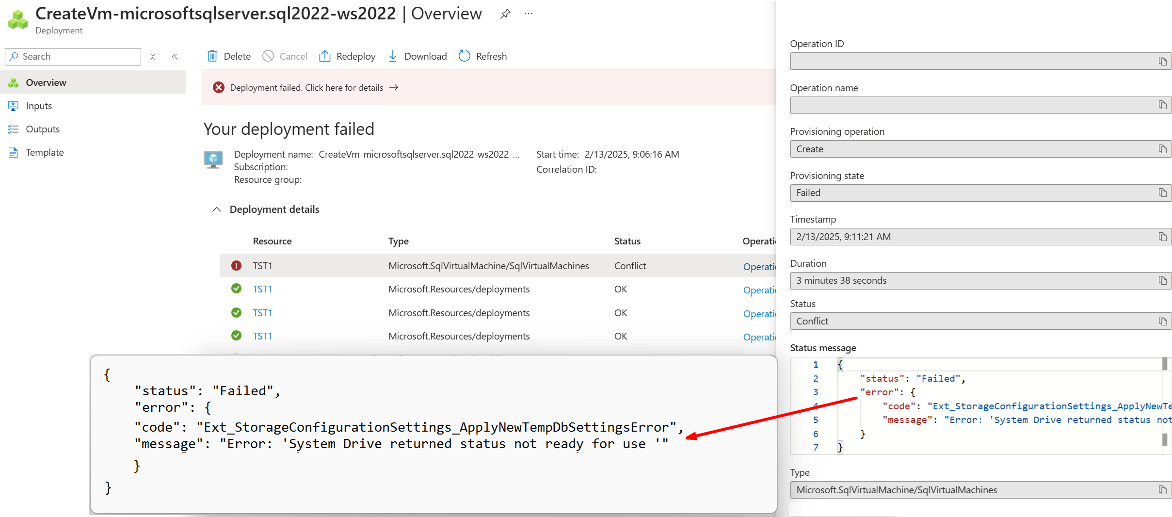 When you try to deploy a SQL Server on Azure VM image from Azure Marketplace, the deployment fails with a status of Conflict and the following error: