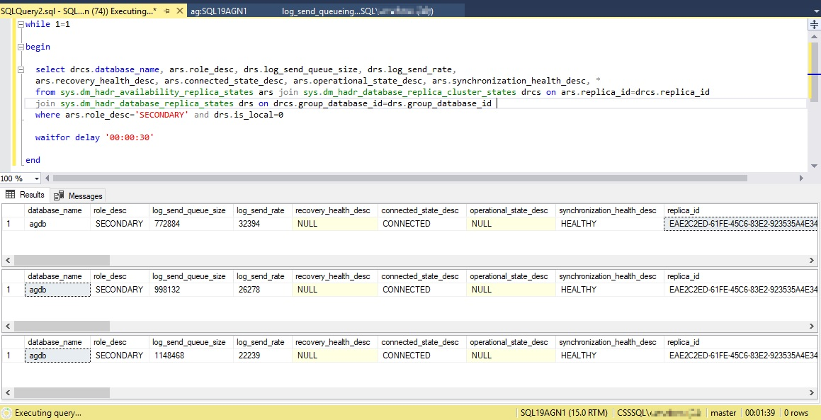 The log send queue is specific to each secondary replica database. Therefore, to review the log send queue of an availability group database, follow these steps: